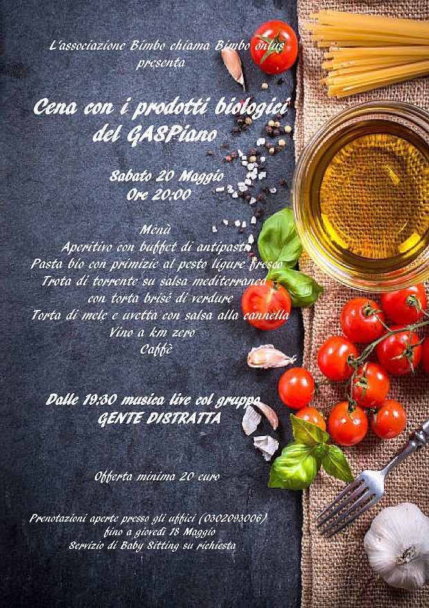 in collaborazione con il GASPiano abbiamo organizzato una cena per Sabato 20 Maggio.