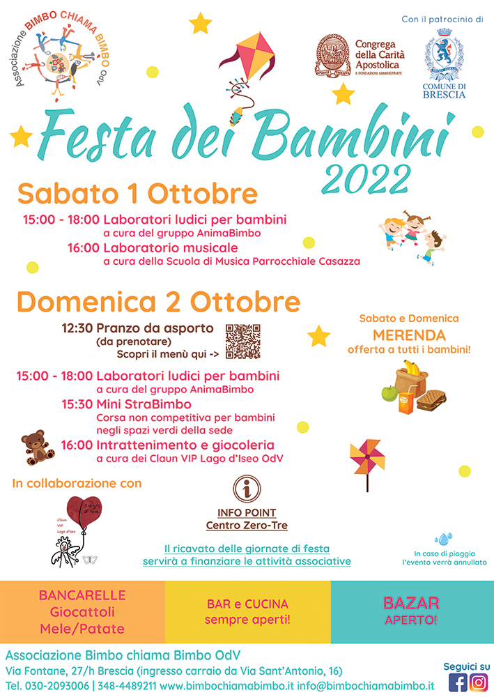 Torna la Festa dei Bambini con laboratori, merenda e anche una mini corsa! Vi aspettiamo Sabato e Domenica 1-2 Ottobre!