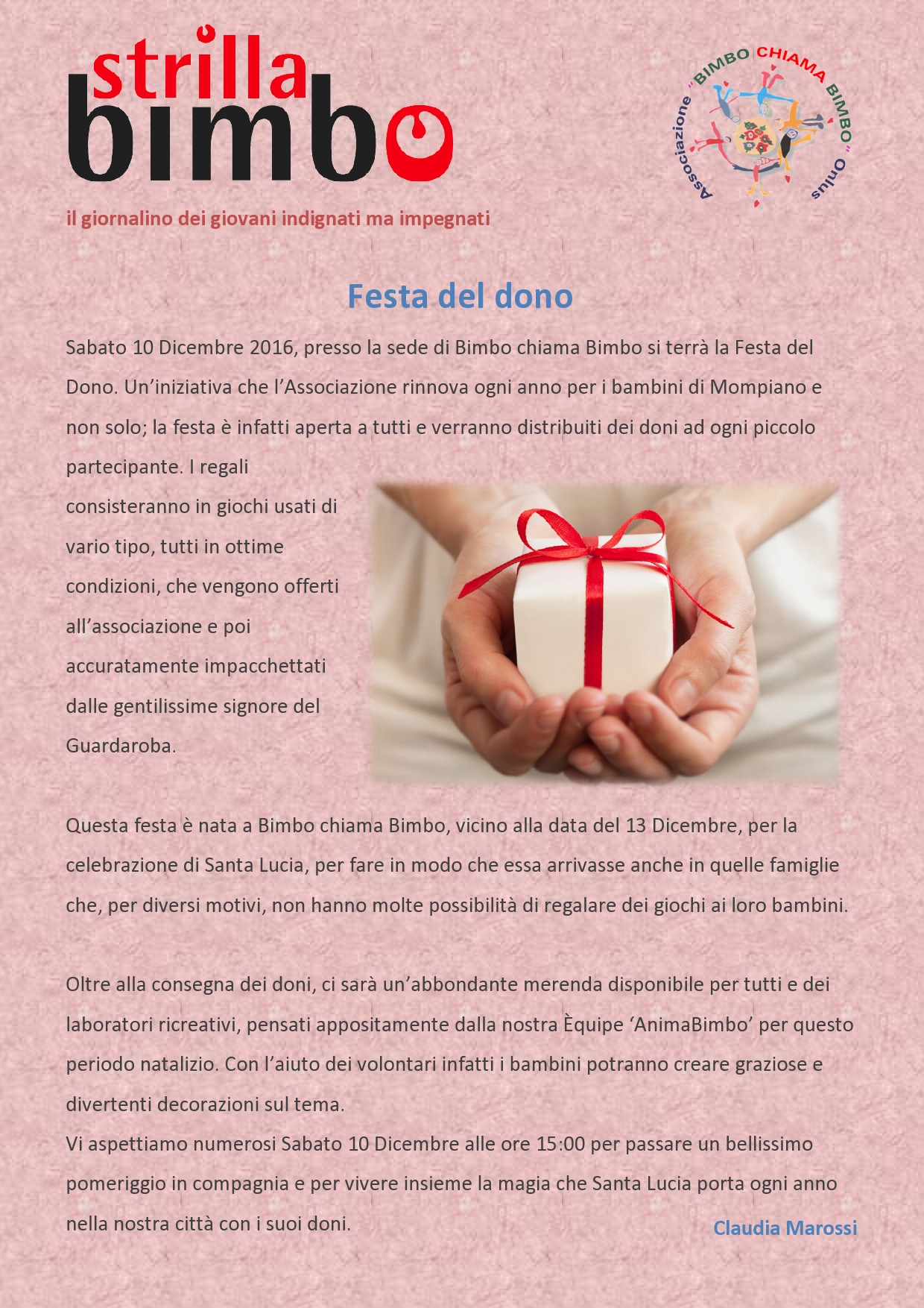 siete tutti invitati alla tradizionale Festa del Dono, un appuntamento annuale ormai consolidato con alcune famiglie supportate dell’Associazione per lo scambio di auguri e la consegna di regali ai bambini.
