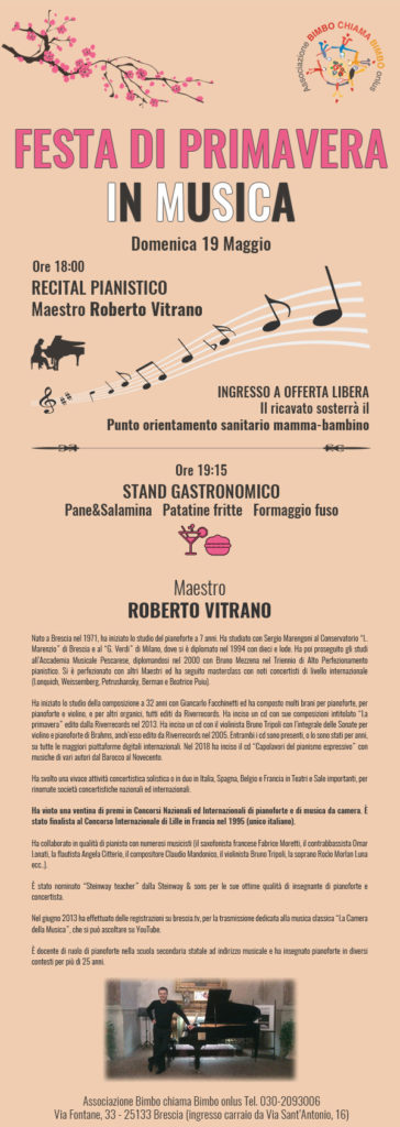 Cari Amici di Bimbo chiama Bimbo,vi invitiamo a partecipare, coinvolgendo amici e parenti, alla FESTA DI PRIMAVERA IN MUSICA