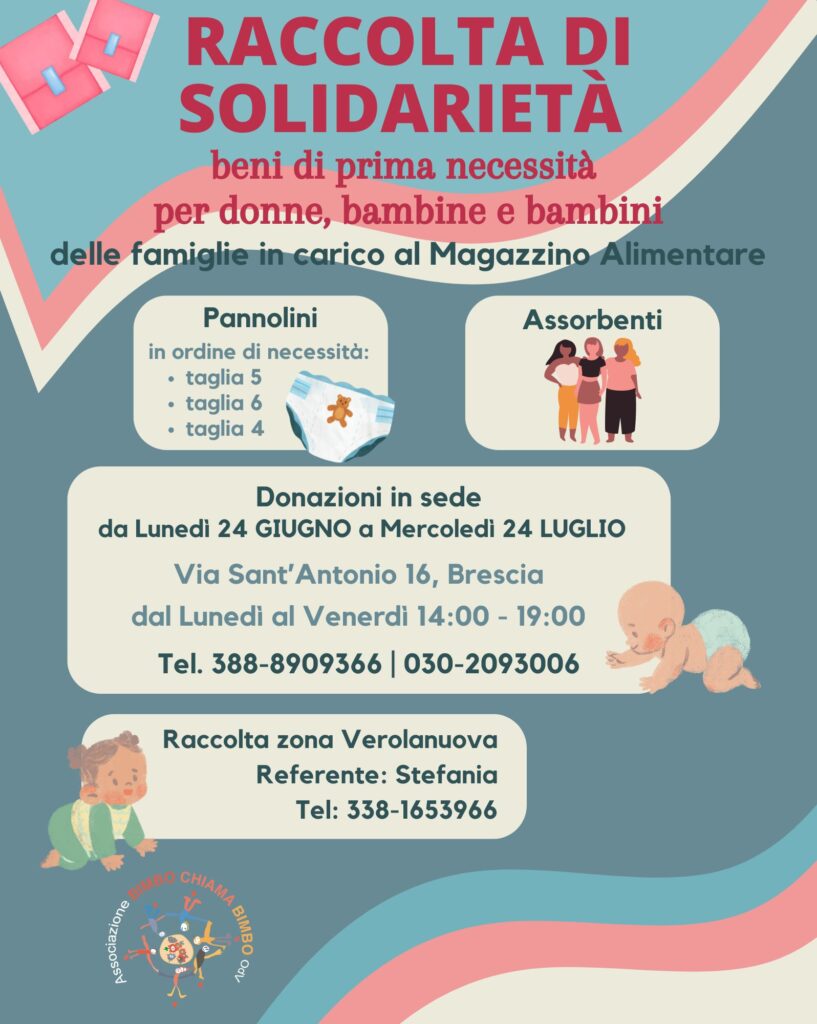 Da Lunedì prossimo fino al 24 Luglio, sarà possibile donare pannolini e assorbenti, che saranno destinati alle famiglie in carico al nostro Magazzino Alimentare