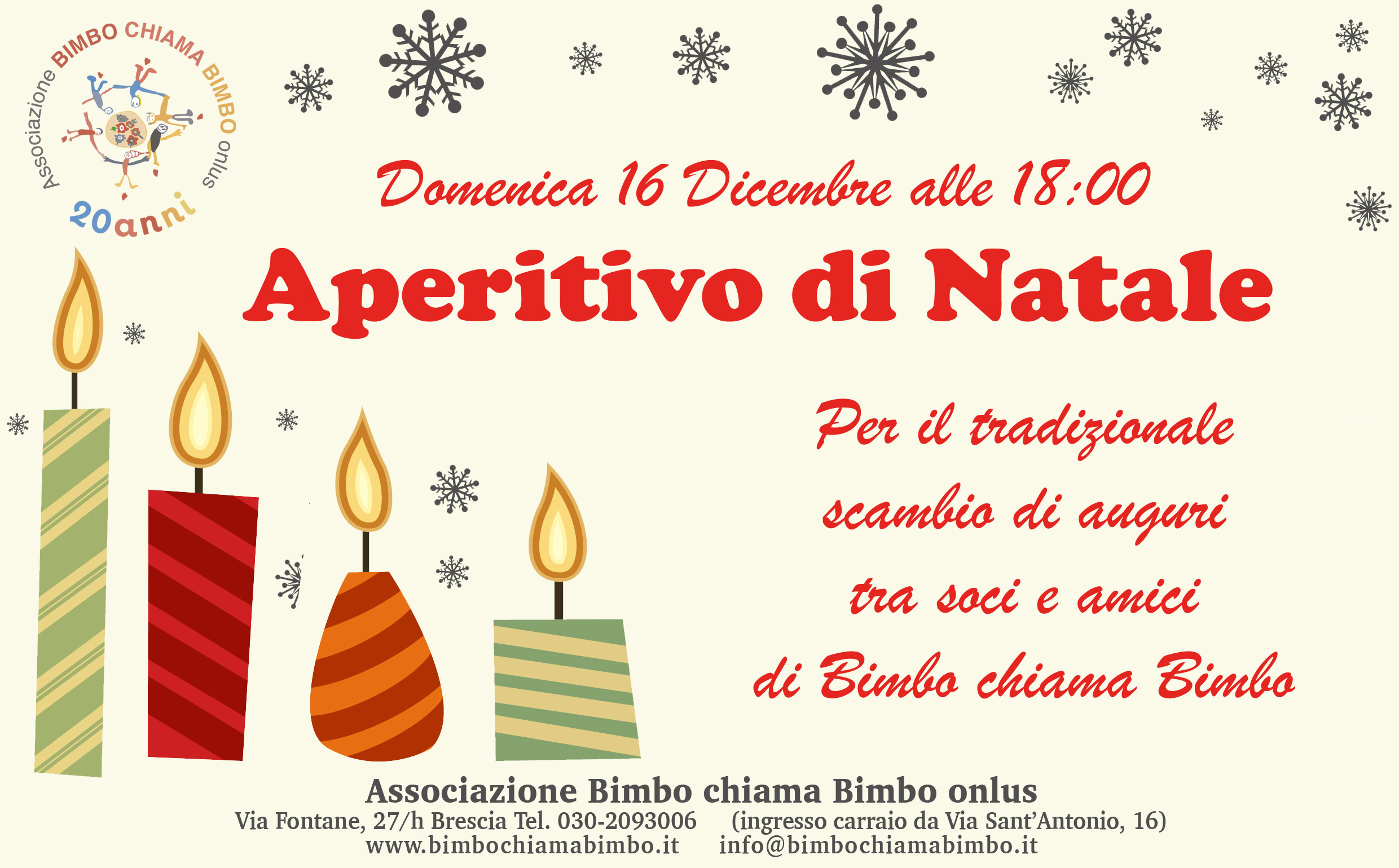 per il consueto scambio di auguri tra soci e simpatizzanti di Bimbo chiama Bimbo, l’instancabile équipe dell’Happy Bimbo ha organizzato per voi a conclusione della Festa del Dono un gustoso aperitivo!
