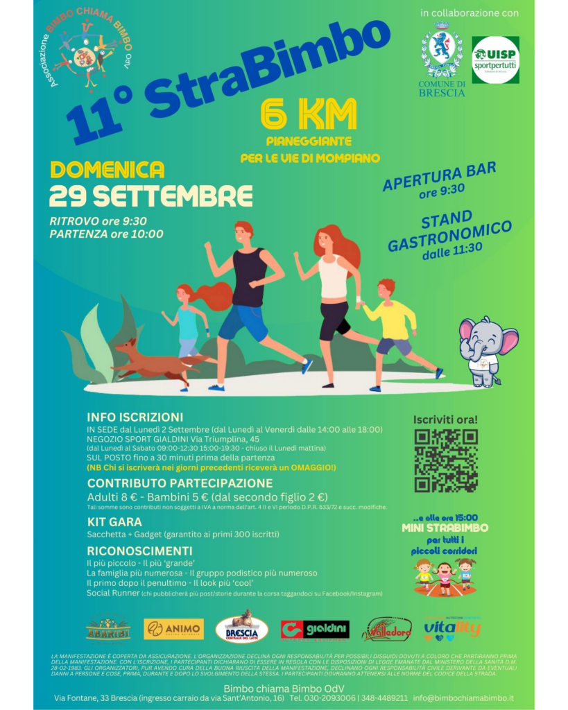 Domenica 29 Settembre vi aspettiamo per la StraBimbo, la consueta corsa non competitiva, ormai giunta alla sua 11° edizione